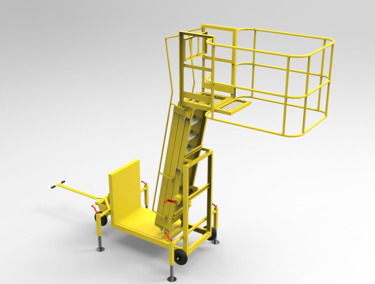 Diseño de plataforma con escalera extensible retráctil con barandas para acceso a camiones tanque, la cual permite tener un acceso seguro a las escotillas superiores.